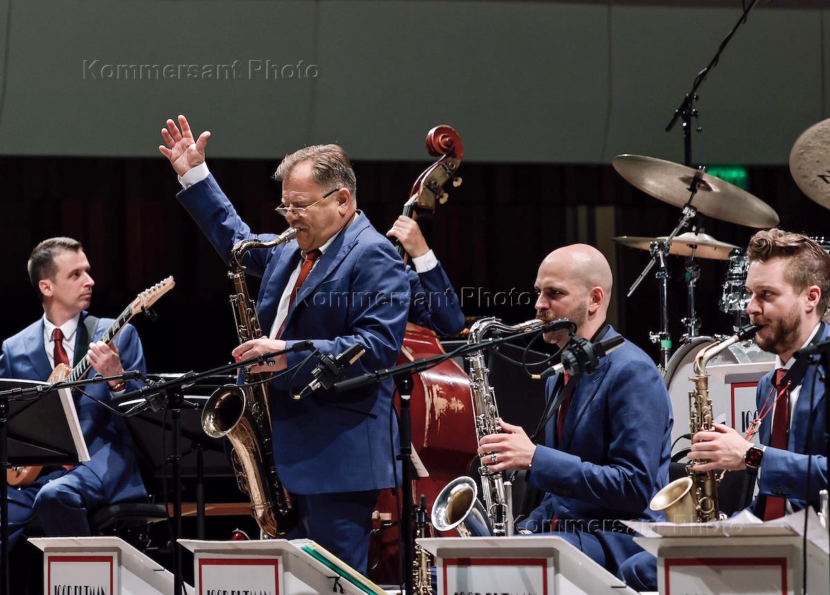 Церемония закрытия Московского джазового фестиваля в КЦ "Зарядье". Джазмен Игорь Бутман (в центре)…