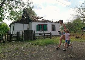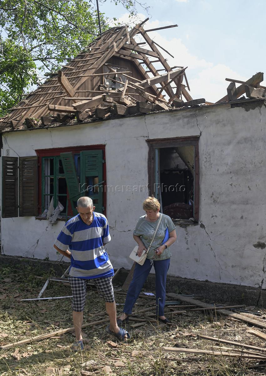 Последствия обстрела микрорайона Ханженково. Пострадавший от обстрела жилой частный дом.