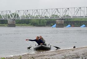 Пресс-тур по Байкало-Амурской магистрали (БАМ). Виды города Новый Ургал. Рыбаки на резиновой лодке…