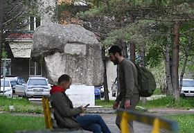 Пресс-тур по Байкало-Амурской магистрали (БАМ). Виды города Новый Ургал. Жанровая фотография. Камень…