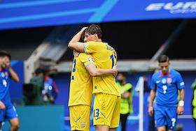 Чемпионат Европы по футболу 2024. 2-й тур. Группа E. Матч между сборными командами Словакии и Украины на стадионе Merkur Spiel-Arena ("Меркур Шпиль-Арена").