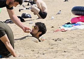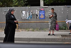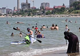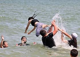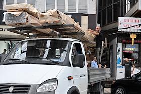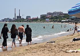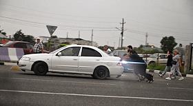 Виды Махачкалы. Жанровая фотография. Мужчины толкают автомобиль.