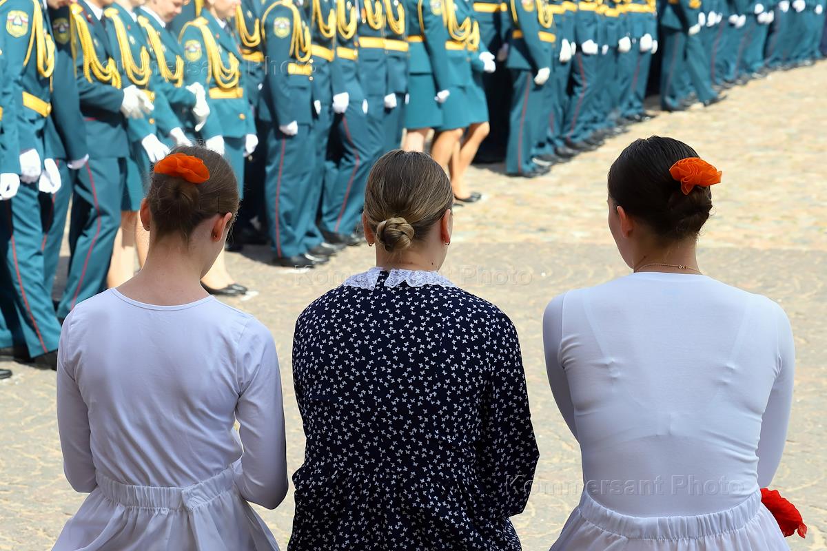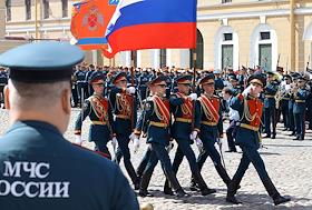 Образование Генеральная репетиция выпуска молодых специалистов Санкт-Петербургского университета Государственной противопожарной службы МЧС России на Соборной площади Петропавловской крепости.
