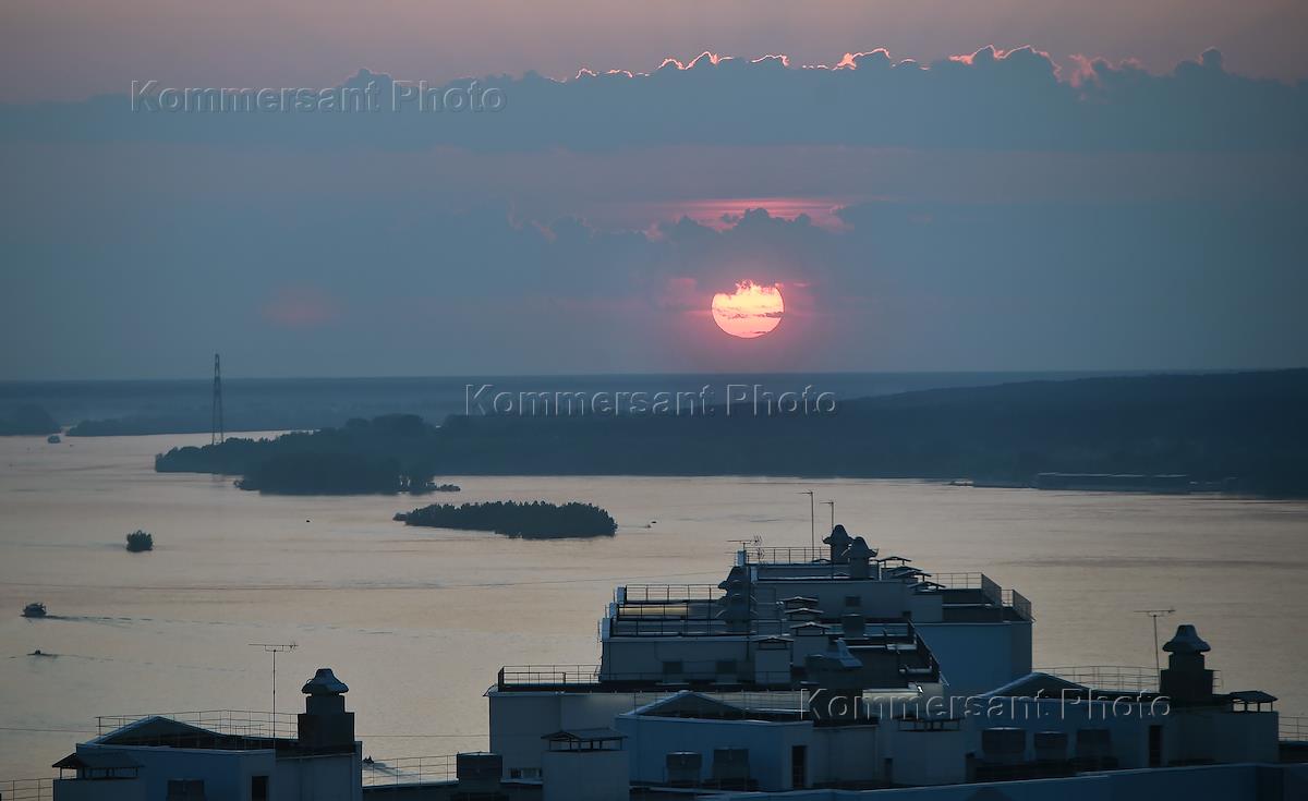 Виды Новосибирска. Жанровая фотография. Закат солнца на реке Обь.