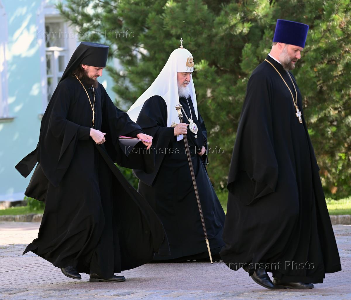 Президент России Владимир Путин во время посещения Свято-Троицкой Сергиевой лавры. Патриарх…