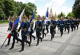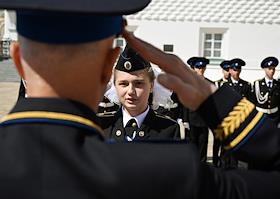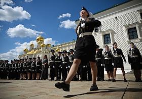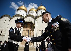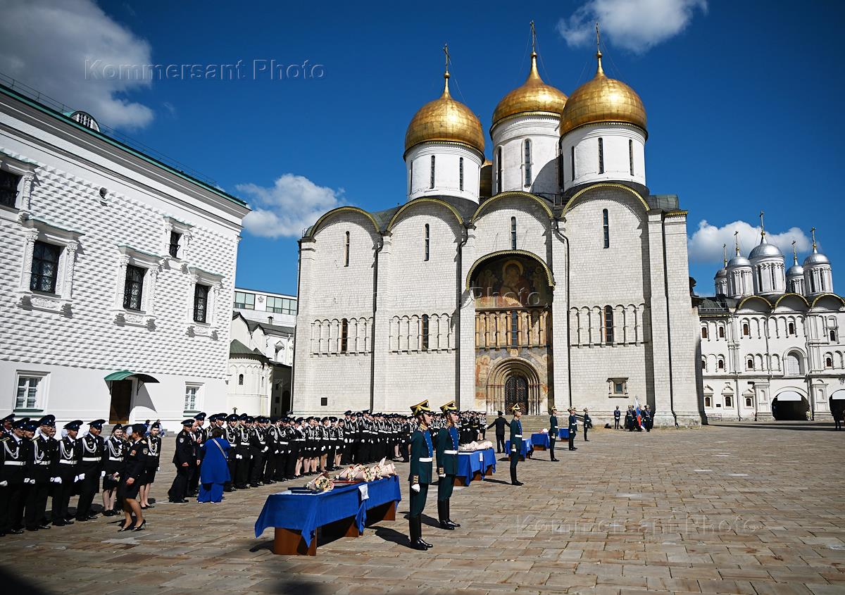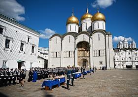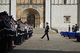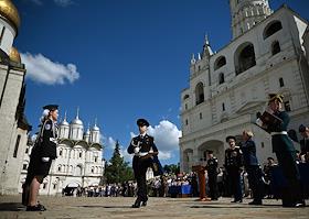 Церемония вручения аттестатов выпускникам 9-х и 11-х кадетских классов ФСО России на Соборной площади Московского Кремля.