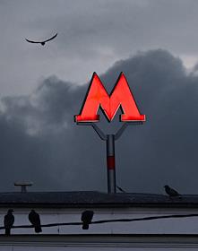 Жанровая фотография. Погода в городе. Грозовая туча над буквой "М" московского метрополитена.