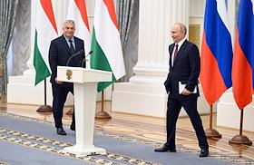 Встреча президента России Владимира Путина с премьер-министром Венгрии Виктором Орбаном в Кремле.