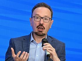Пресс-конференция, посвященная проведению форума будущего БРИКС "Облачный город" в Ситуационном центре Москвы.