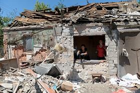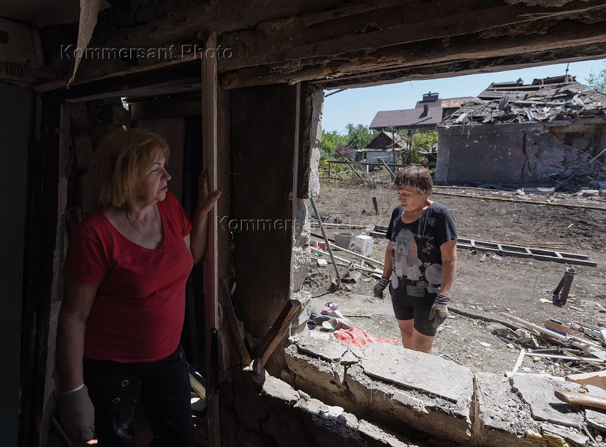 Последствия обстрела города Ясиноватая. Жанровая фотография. Разрушенный в результате обстрела дом.