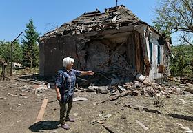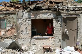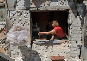 Последствия обстрела города Ясиноватая. Жанровая фотография. Женщина в разрушенном в результате…