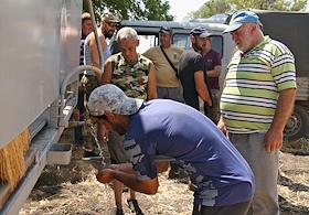 Уборка урожая зерновых на полях Целинского района. Поселок Вороново. Жанровая фотография. Сотрудники…