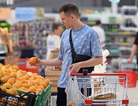 Работа гипермаркета "АШАН" в торговом центре (ТЦ) "Авиапарк". Жанровая фотография. Покупатели в…