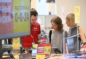Работа магазина "М.Видео" в торговом центре (ТЦ) "Метрополис". Жанровая фотография. Консультанты в…