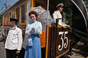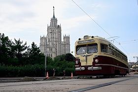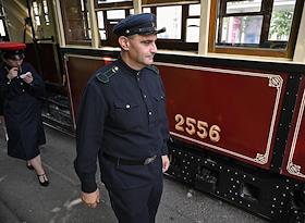Парад трамваев и ретроавтомобилей в честь Дня московского транспорта на Чистопрудном бульваре.
