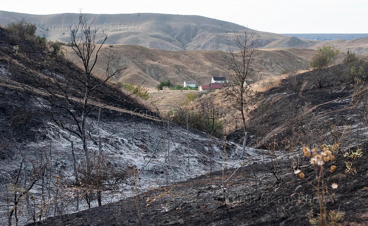 Последствия пожара в Коктебеле рядом с Карадагским природным заповедником.