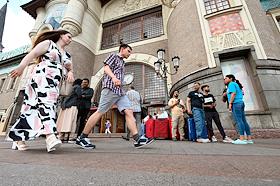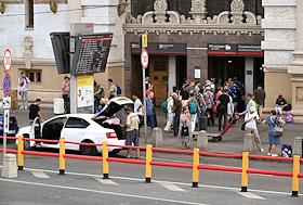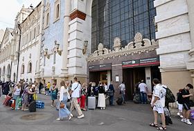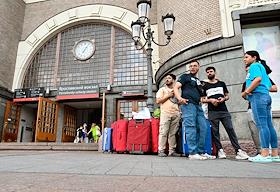 Виды Москвы. Жанровая фотография. Площадь трех вокзалов (Комсомольская площадь). Пассажиры у входа в…