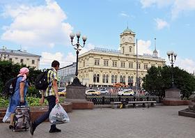Виды Москвы. Жанровая фотография. Площадь трех вокзалов (Комсомольская площадь). Фасад здания…