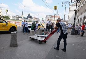 Виды Москвы. Жанровая фотография. Площадь трех вокзалов (Комсомольская площадь). Носильщик в…