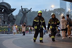 Пожар в здании Центра цифровизации образования на Пресненском Валу. Сотрудники пожарной службы МЧС…