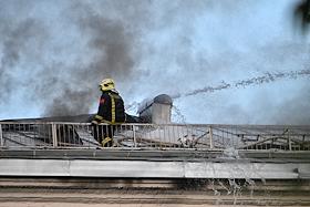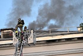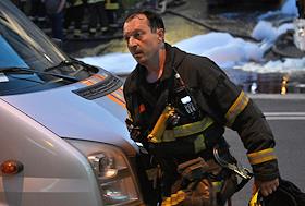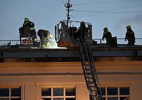 Пожар в здании Центра цифровизации образования на Пресненском Валу. Жанровая фотография. Сотрудник…