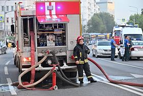 Пожар в здании Центра цифровизации образования на Пресненском Валу. Жанровая фотография. Автомобили…