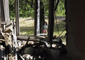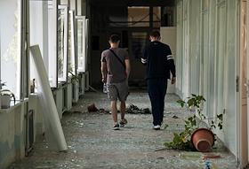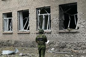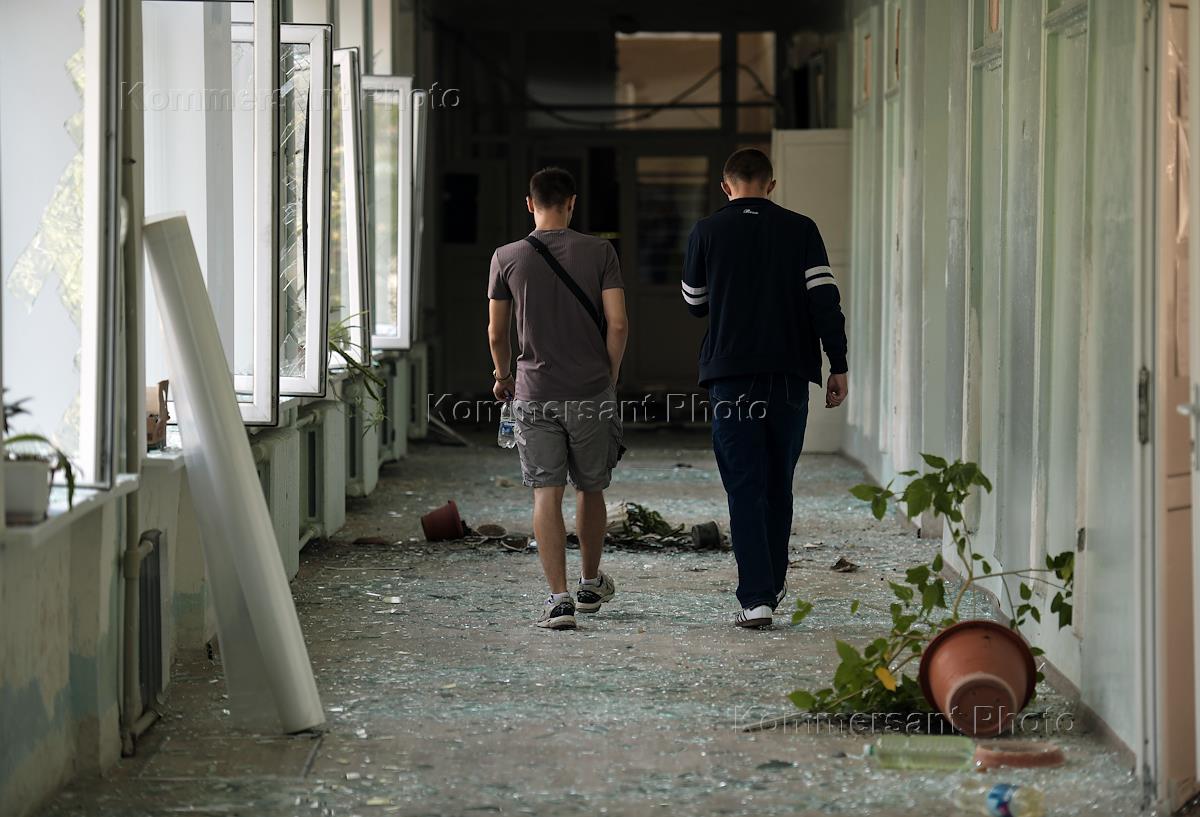 Последствия обстрела в Донецке, в результате которого пострадала школа.