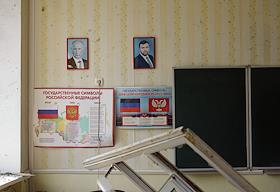 Последствия обстрела Калининского района Донецка, в результате которого пострадала школа. Класс в…