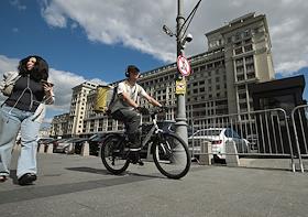 Жанровая фотография. Виды Москвы. Улица Охотный ряд. Здание Государственной думы России. Курьер…