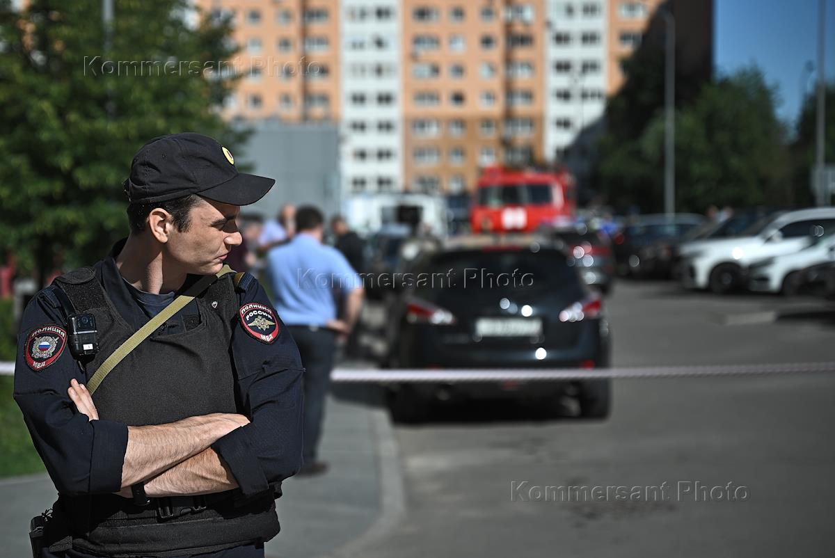 Consequences of the explosion of a Toyota Land Cruiser on Sinyavinskaya Street in Moscow. On the…