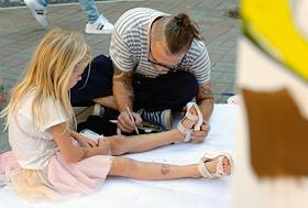 VI фестиваль паблик-арта "Дворы Капеллы". Гости фестиваля во время участия в инсталляции "Школьная…