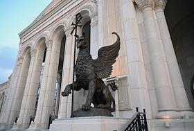 Виды Музейно-храмового комплекса "Новый Херсонес". Скульптура грифона перед музеем Христианства.