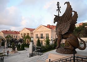 Виды Музейно-храмового комплекса "Новый Херсонес". Скульптура двухглавого орла у входа в амфитеатр…