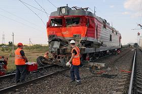 Локомотив пассажирского поезда "Казань-Адлер", сошедшего с рельсов в Котельниковском районе…