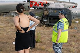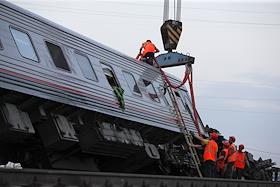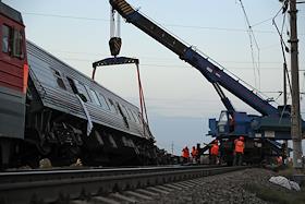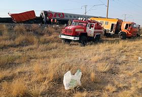 Последствия схода вагонов пассажирского поезда "Казань-Адлер" в Котельниковском районе Волгоградской области.