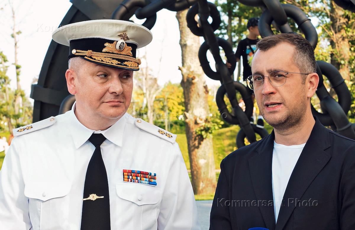 Церемония открытия 4-ой очереди музейно-исторического парка "Остров фортов" в Кронштадте. Справа…