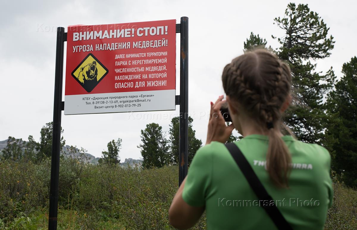 Природный парк Ергаки. Предупреждающая табличка об угрозе нападения медведей.