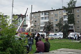 Обрушение подъезда жилого дома в результате взрыва газового баллона на улице Сибирской в Нижнем Тагиле.