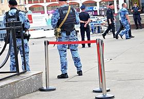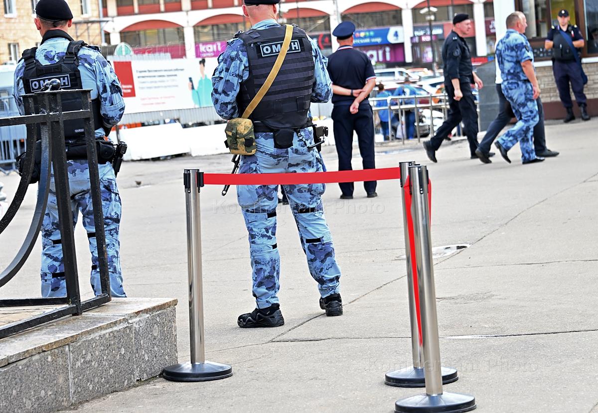 Виды Москвы. Жанровая фотография. Сотрудники ОМОНа на Ярославском железнодорожном вокзале.