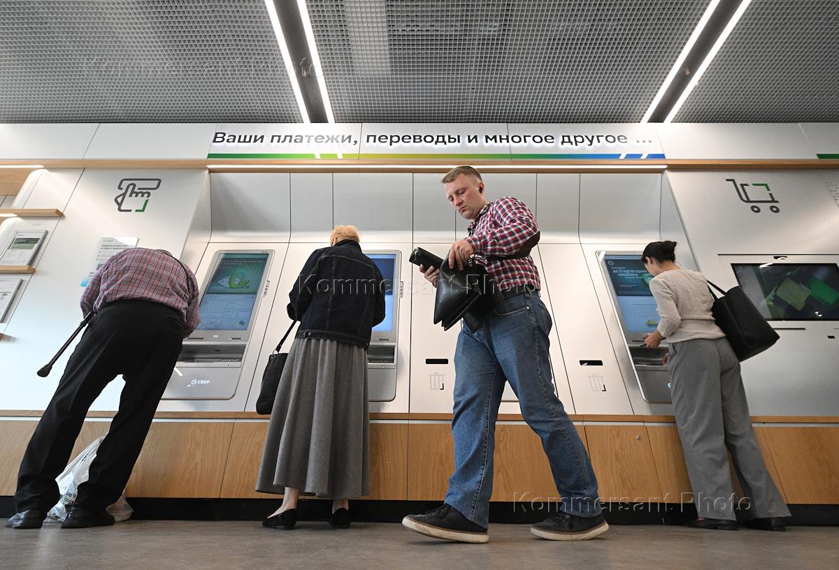 Краш-тест биометрии при "оплате улыбкой" в отделении Сбера на Цветном бульваре. Жанровая фотография.