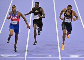 XXXIII Летние Олимпийские игры в Париже. Легкая атлетика. Финал. Мужчины. Бег 400 метров. Слева…
