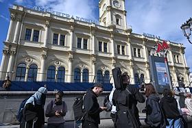 Жанровая фотография. Здание Ленинградского вокзала закрыли на ремонт.