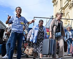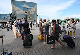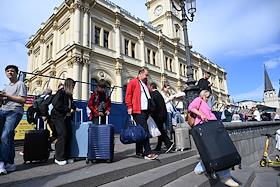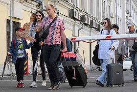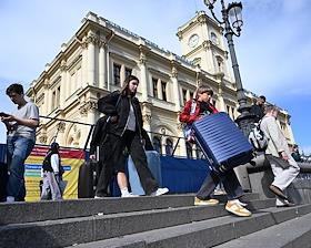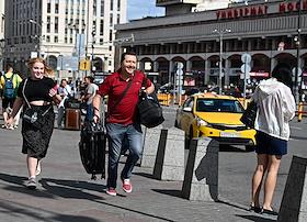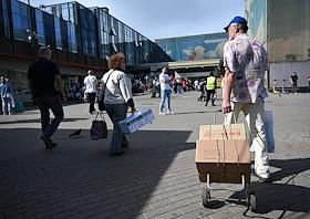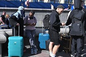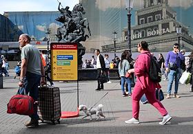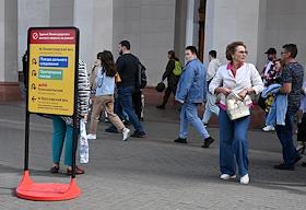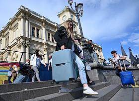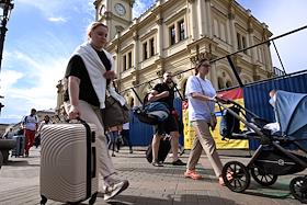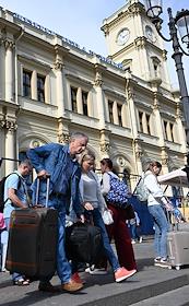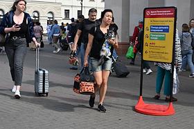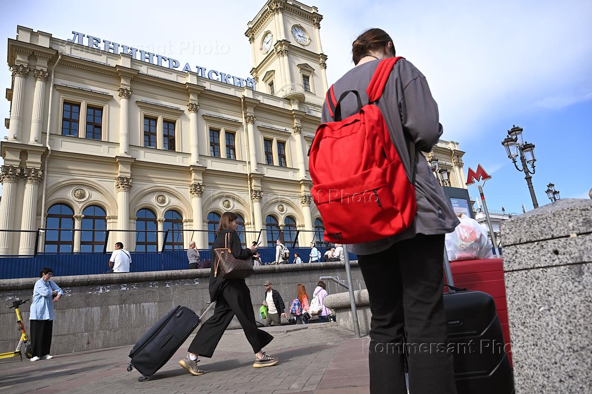 Виды Москвы. Жанровая фотография. Пассажиры на территории Ленинградского железнодорожного вокзала.