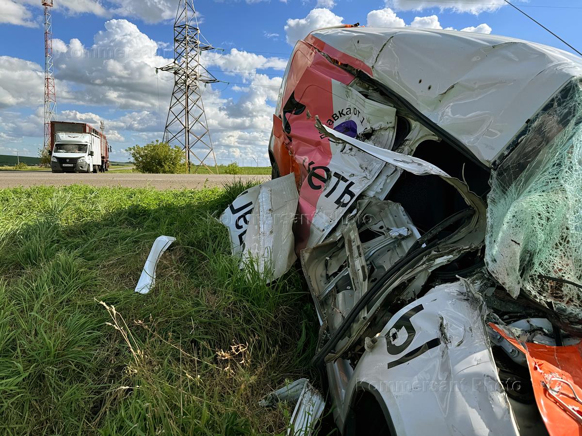 Ситуация в Курской области после обстрела ВСУ. Разбитый автомобиль на обочине дороги.