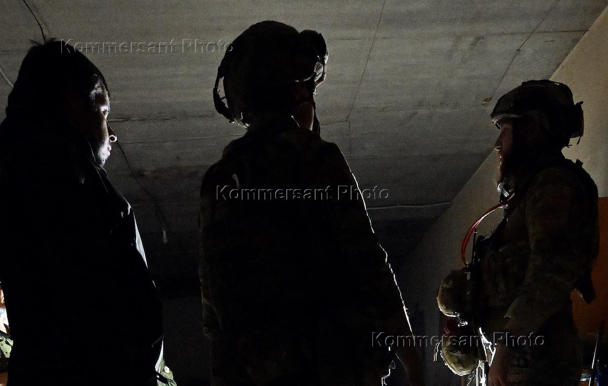 Ситуация в Курской области после обстрела ВСУ. Жанровая фотография. Военные в камуфляжной форме.