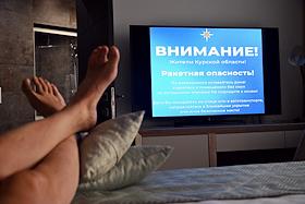 Ситуация в Курской области. Предупреждение жителям Курской области о ракетной опасности на экране…