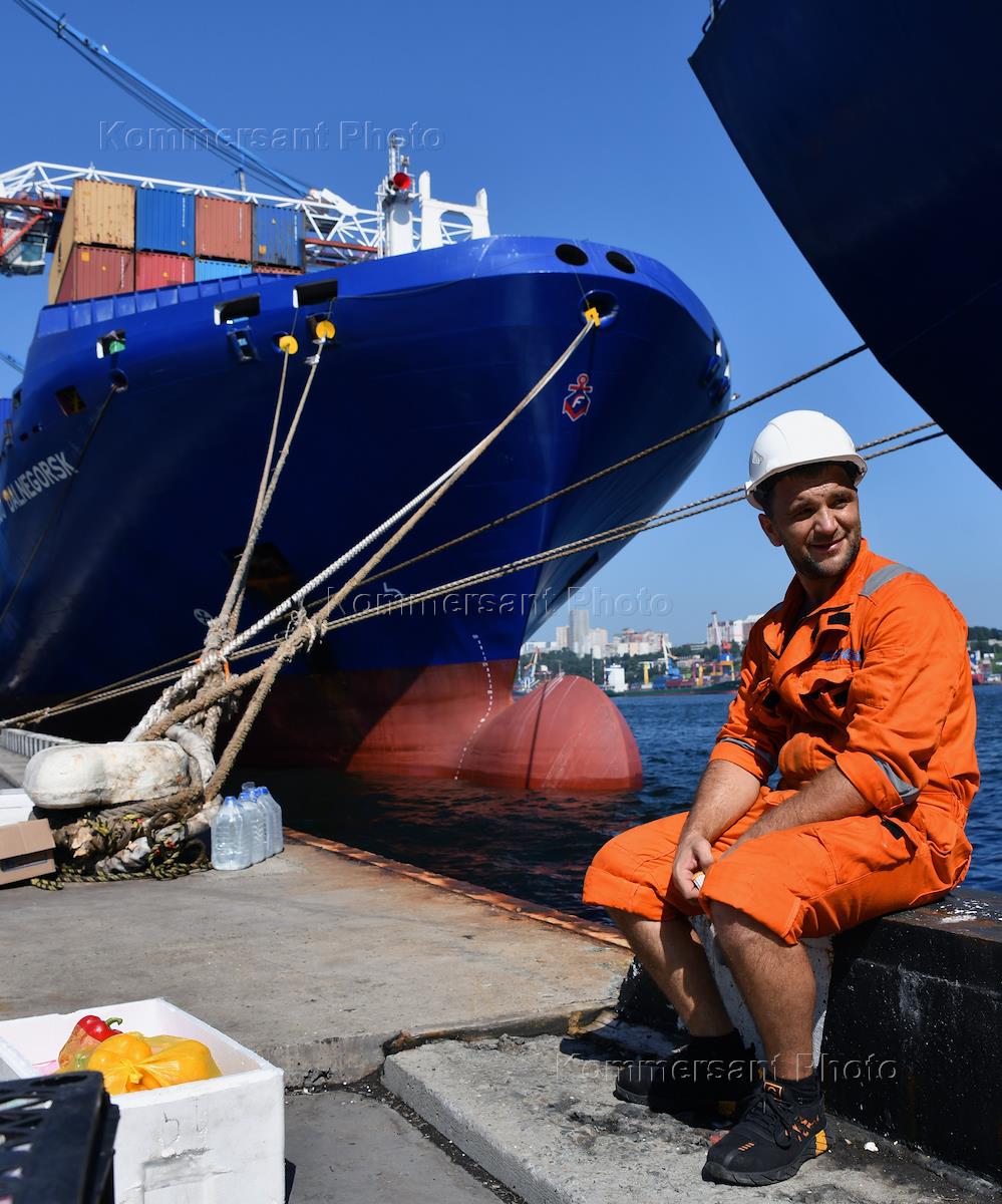Виды Владивостока. Жанровая фотография. Рабочий на территории Морского торгового порта.