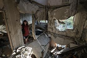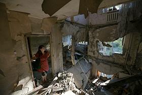 Последствия обстрела Петровского района в Донецке. Разрушенный многоэтажный жилой дом.