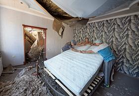 Consequences of the shelling of Makeyevka. People in a destroyed house.
