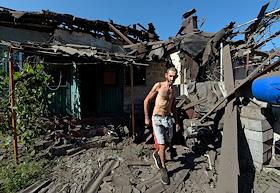 Consequences of the shelling of Makeyevka. A man near a destroyed house.